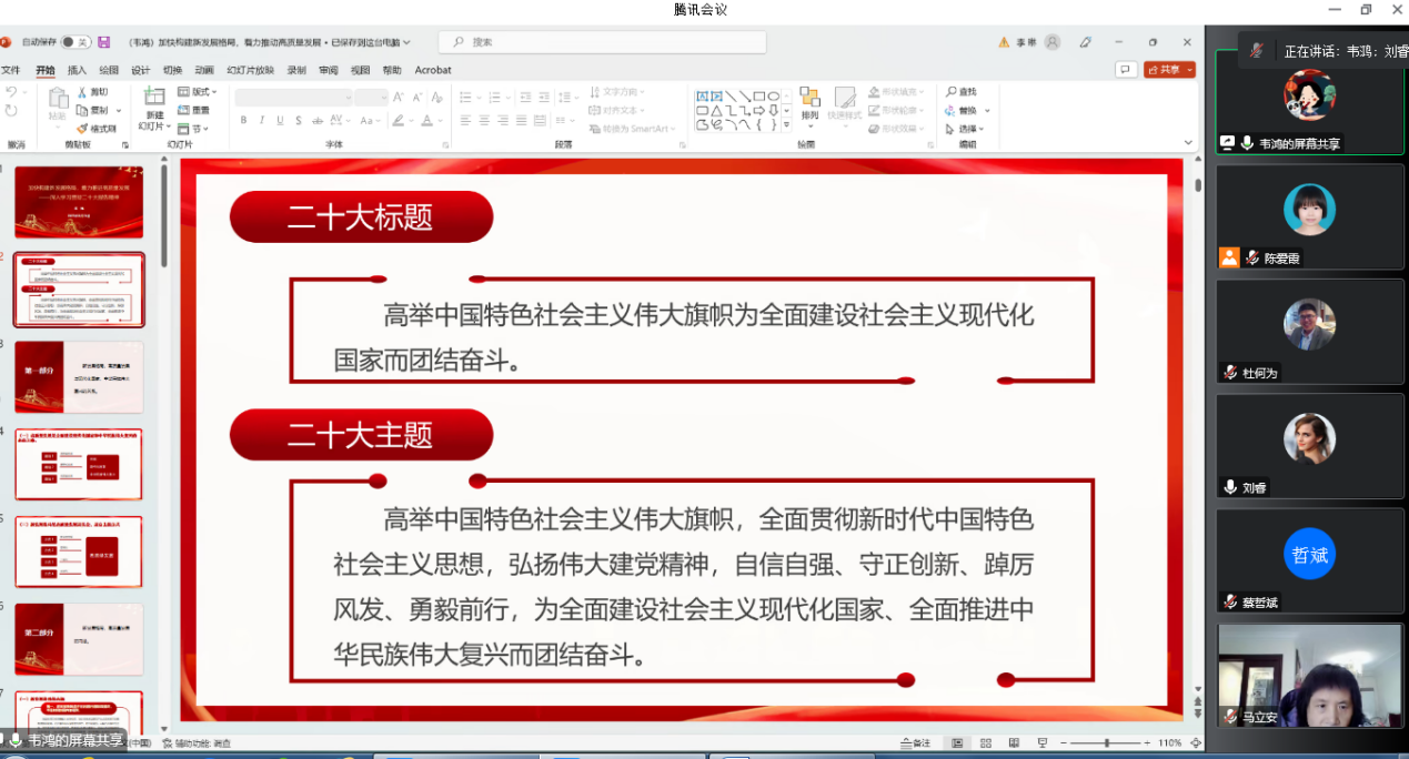 马克思主义宣讲队成员、长江经济带发展研究院院长韦鸿教授作“加快构建新发展格局,着力推进高质量发展”为题的宣讲报告,全院教职工参会,学院党委委员杜何为主持宣讲会,会议以线上方式进行。