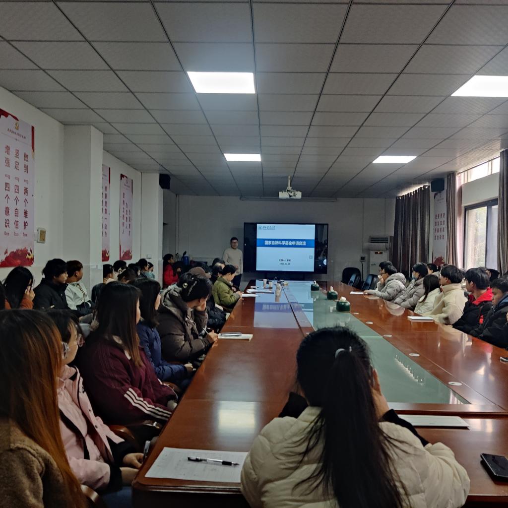 西校区1号楼217会议室,华中农业大学食品科技学院的李斌教授作了题为《国家自然科学基金申请交流》的报告,学院院长杜何为主持报告会。