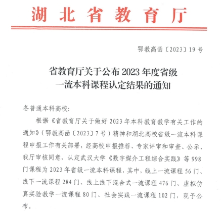 (通讯员:李进)11月29日,湖北省教育厅公布了2023年度省级一流本科课程认定结果(鄂教高函〔2023〕19号),91porn 李进博士主讲的《药理学》课程被认定为省级线上线下混合式一流课程。