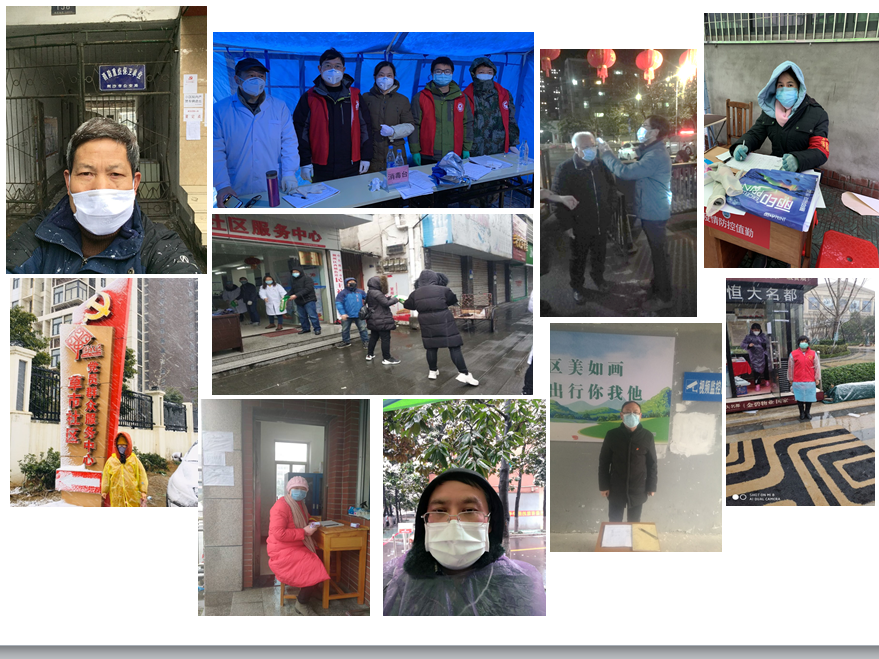 冯朝章、杜何为、田志宏、马立安、夏帆、孙文秀、何勇、胡静荣、陈爱霞、罗岸等党员教师仍然坚守在大街小巷和所在社区出入口,在凌冽的寒风中有条不紊的进行着人员登记、体温测量等等工作。风雪再大,也阻挡不住他们的脚步。