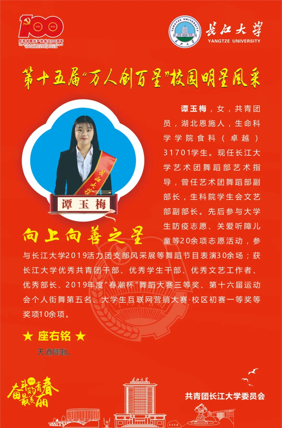 【第十五届“万人创百星”校园明星风采】——向上向善之星谭玉梅