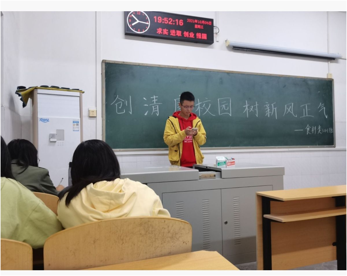 组织各班级分班开展“学习监察法,培育廉洁人”主题班会和团日活动。主题班会和团日活动由各班团支部副书记主持,全体同学参加。