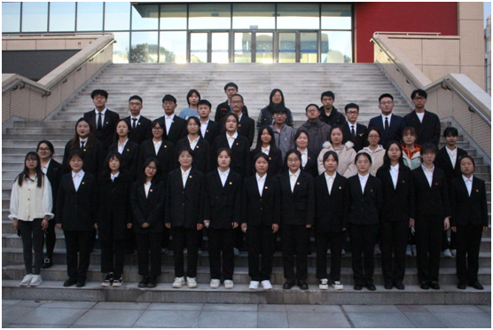 四大院青马学习小组学生辅导员及学员在西区体育馆门口合