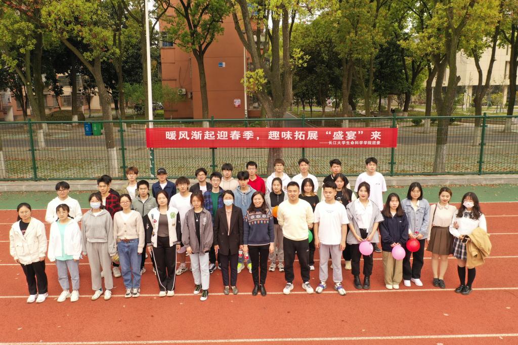 在西校区操场开展了趣味拓展活动,汪萍书记,顾志翔老师,范昆琨老师和全体同学共同参与了此次活动。
