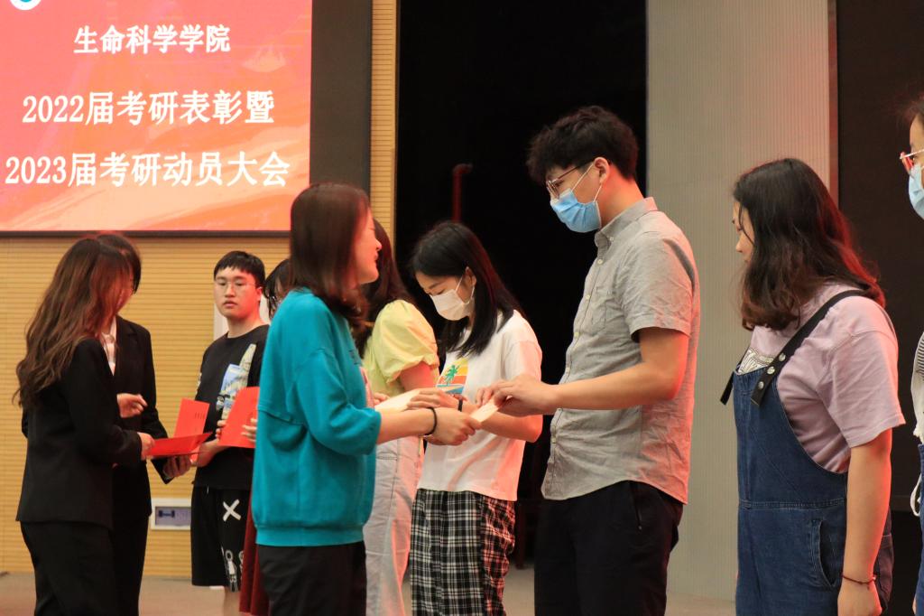 会上,党委副书记汪萍宣读了表彰文件,授予李锦燕等101名同学“考研先进个人”,生技制药产31801班等3个班级“考研优胜班级”。随后,雷雄彪、蒋婧姣、李银芝、贺宏超、冯家忠、陈肇琴等6位同学作为2022届考研先进个人代表上台进行经验分享。他们各有侧重,分别从自己考研目标的确定、考研心态的调整、各科的学习心得与复习备考方法等方面给予了即将考研的学子们实用的建议。随后,副院长孙卫青教授就生科学院的考研政策和考研情况向同学们作了具体介绍,建议同学们选择院校时要客观认识自身情况,切合实际,并做好考研规划。