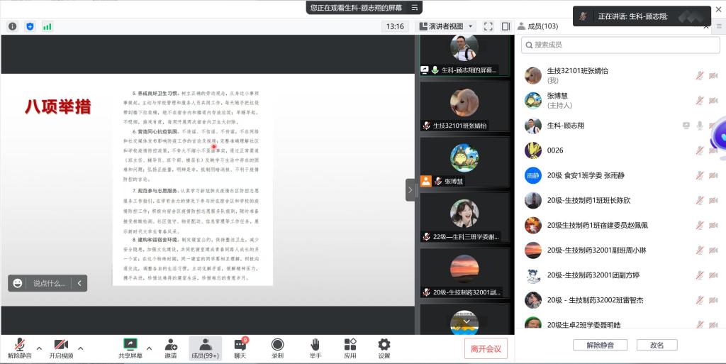 本次会议主要从关注防疫政策、学习学校文件、落实防疫责任三方面展开。会议中,由顾志翔老师带领各位学干共同学习“长大学子勇担抗疫责任八项举措” 、《致91porn