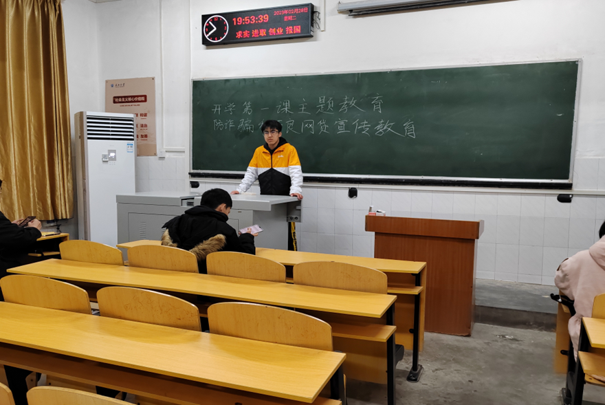 会议上,由各班安全员首先普及学生群体中常见的兼职刷单、冒充客服、虚假贷款、“杀猪盘”、“套路贷”、“公检法”等典型诈骗方式。再通过真实案例讲解、播放视频等方式,让大家进一步了解诈骗和网贷的危害,提醒大家提高警惕,吸取经验教训,努力识别各种样式的骗局,最大限度的报障自己的人身财产安全。最后,各安全员向同学们强调,如果不慎进入不法分子设的局,要尽可能保持冷静,学会向家长、老师、警察求助,用法律武器维权。