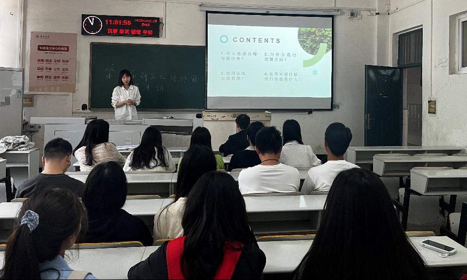第四届研究生讲师团于5月12日在西校区七教106教室开展第十场专题宣讲活动。讲师团成员翟璐作题为《碳达峰与碳中和——关爱环境,尊重自然》的宣讲,91porn