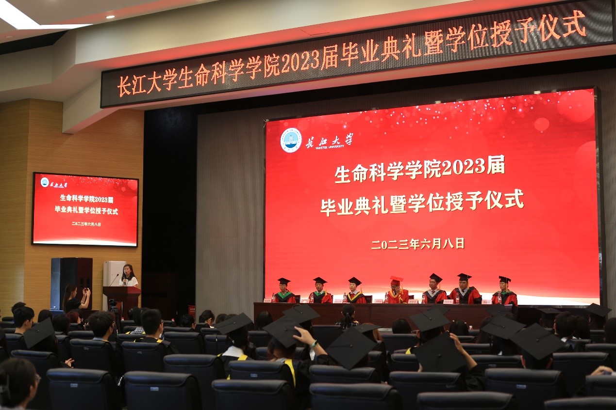 生命科学2023届毕业典礼暨学位授予仪式在农科楼1058报告厅隆重举行。学院院长高梦祥、副院长孙卫青、副院长杜何为、教授代表田志宏、吴庆华、孙文秀、李真顺,系主任江洪波、陈卉,班主任代表魏淑东、陈颖、陈爱霞,辅导员范昆琨、郭凯及2023届全体毕业生出席了典礼,典礼由学院党委副书记汪萍主持。
