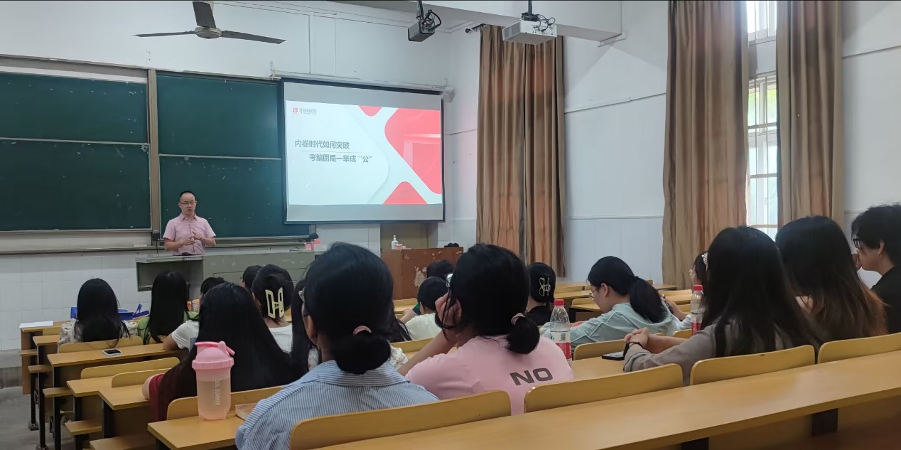 邀请华图教育肖老师于西校区2教T2教室为毕业生开展公务员备考公益讲座,学院2020级、2021级本科生与部分研究生参加了此次讲座,由学院就业专干章崇烁主持。