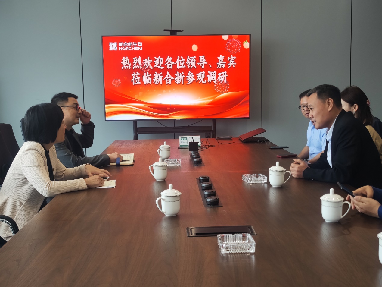 随后,一行人来到湖南新合新生物医药有限公司,参观了其车间流水线。在车间内,大家亲眼目睹了现代化生产线的运作过程,对新合新生物医药在落实环保政策、提升生产效率、优化生产流程方面所做的努力表示肯定。同时,双方就如何加强实践教学、提升学生实践能力等议题进行了深入探讨。