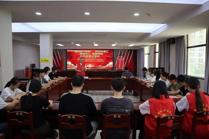 的30名志愿者走进荆西社区,成功举办了以“请党放心,强国有我”为主题的红色故事分享会创文活动。