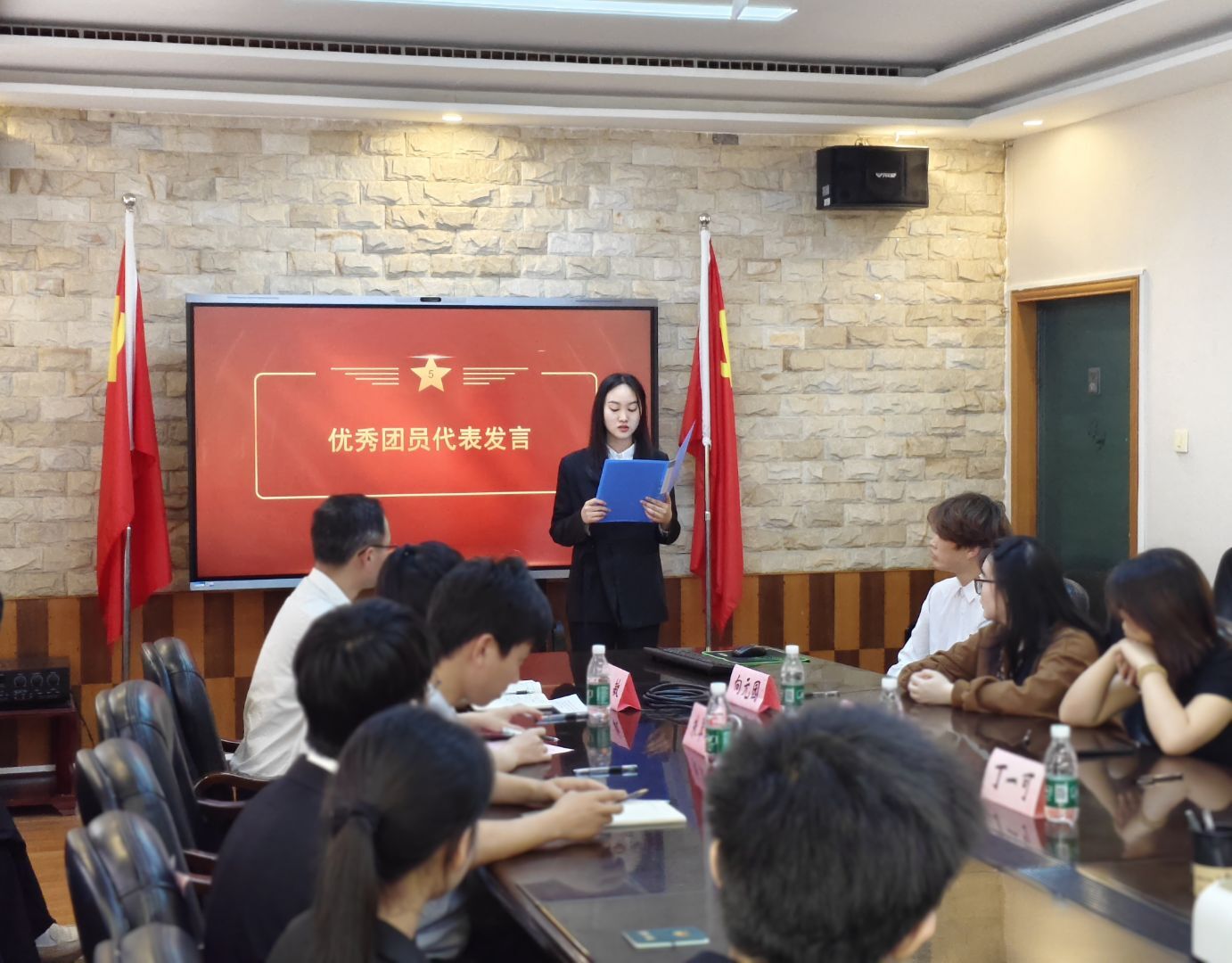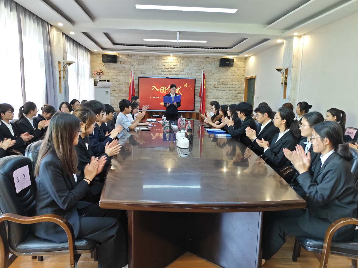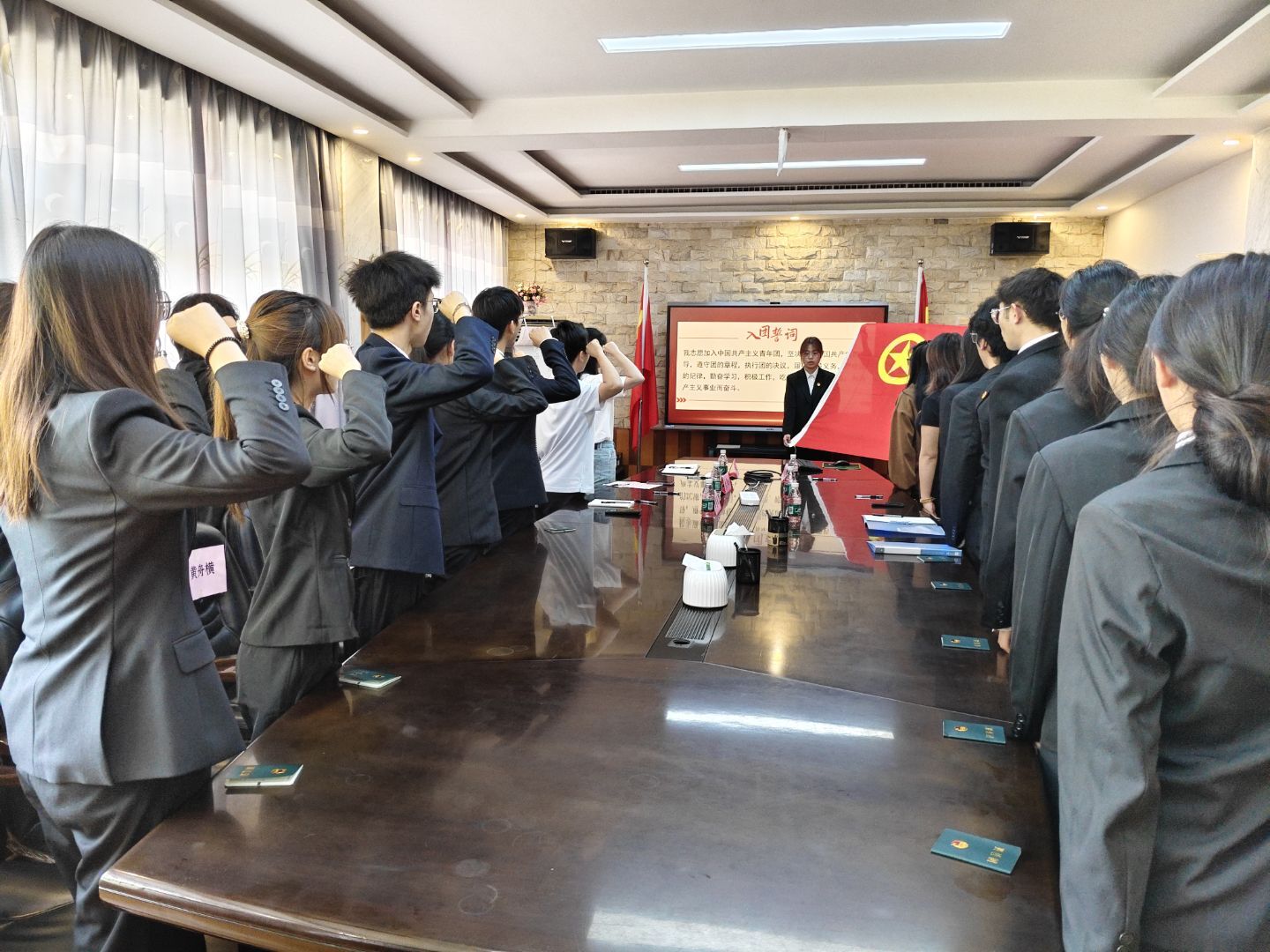 在行政楼323会议室举行2025年新团员入团仪式。学院全体专兼职辅导员、新发展团员和老团员代表参加活动。