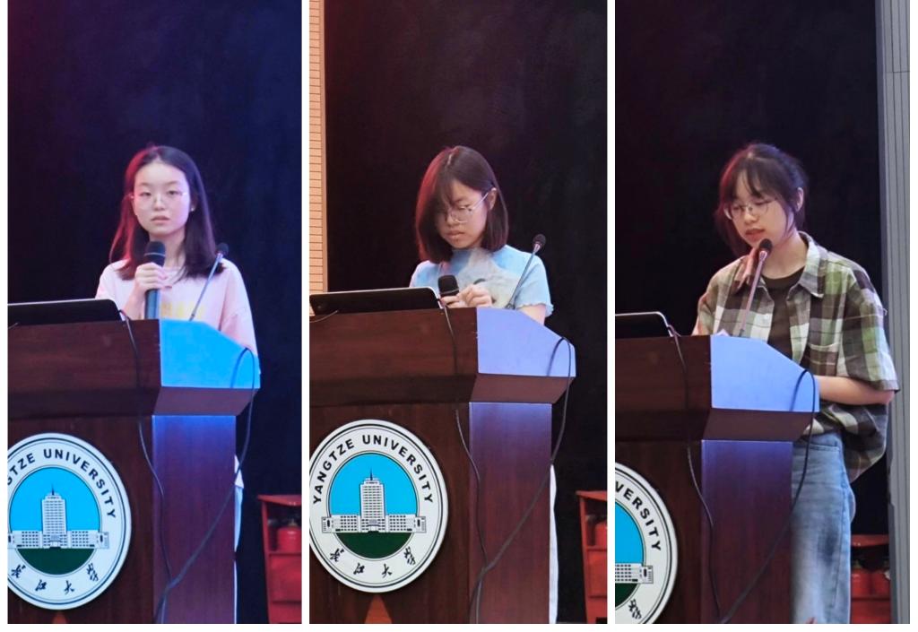 在经验分享环节,来自三个年级的学生代表展现了多维度的备考智慧。2024级李佳妮以从“要我学到“我要学”为主题分享了学习主观能动性的重要性。2023级汪文俊以“学习原料”为切入点,分享了英语听力、阅读、写作的提升技巧;2022级谢思琪重点分析了英语六级的备考策略与实战技巧。三人从不同视角构建起立体化的备考图谱,为大一学生注入强大信心。