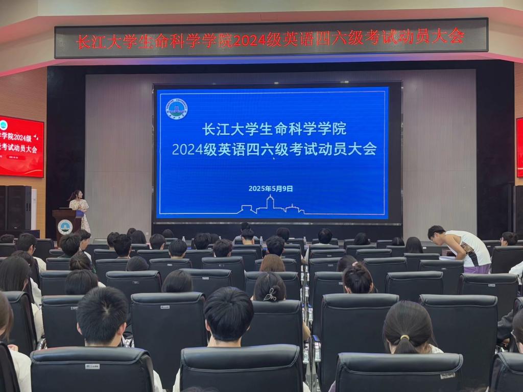 于5月9日下午在西校区1058报告厅召开2024级英语四六级考试动员大会。学院党委副书记万波、2024级辅导员朱翠玲及全体大一学生共同参与。