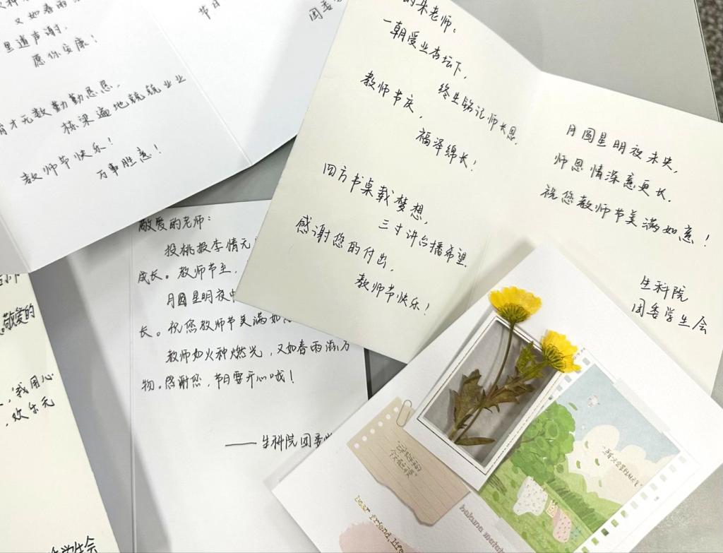 的学子们用最质朴的方式表达对老师们的敬意与感谢,一张张饱含深情的手写贺卡,为辛勤耕耘的老师们送上了最真挚的祝福。
