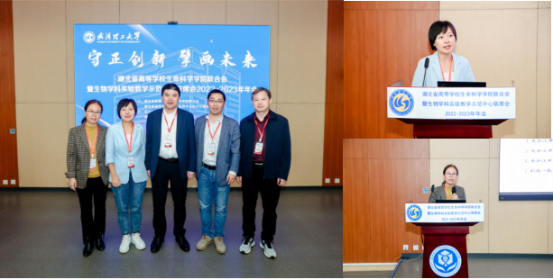 联合会暨生物学科实验教学示范中心联席会2022-2023年年会在武汉理工大学举行。学院院长杜何为,副院长陈卉、系主任吴华伟、孙文秀教授和李进博士参加了本次联合会。陈卉和孙文秀围绕课程改革和专业建设,分别作了题为《基于“师生学习共同体”的《生态学》混合式课堂》和《新工科背景下地方高校生物工程专业建设研究与实践》的会议报告。