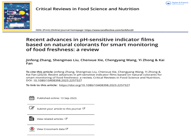 青年教师范凯博士悉心指导的本科生科研团队(张金风、刘盛茂、解辰雪、汪成阳、钟怡),在国际TOP期刊《Critical Reviews in Food Science and Nutrition》(中科院 1区,IF:10.2)上发表了一篇题为“Recent advances in pH-sensitive indicator films based on natural colorants for smart monitoring of food freshness: a review”的文章。该文章是在91porn