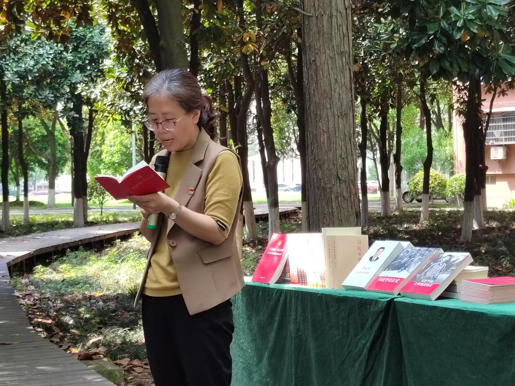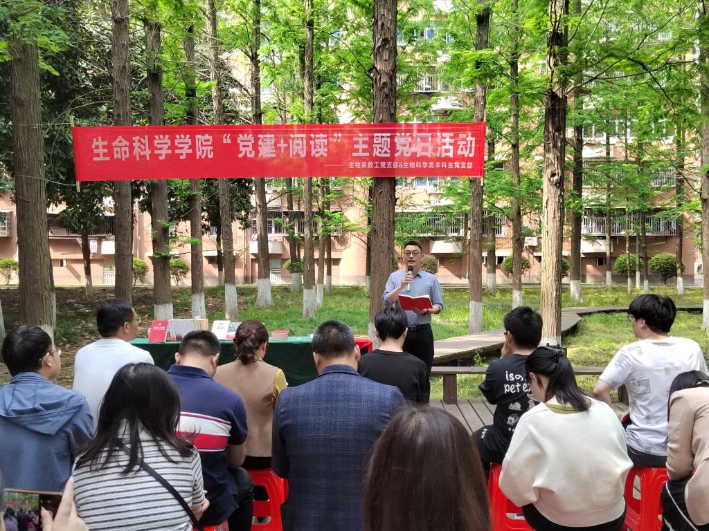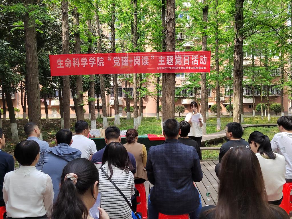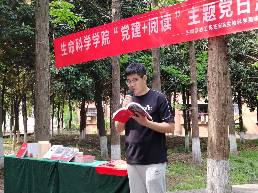 生物系教工党支部和生物科学类本科生党支部在室外联合开展了“党建+阅读”主题党日活动,在书香中传递奋进力量。