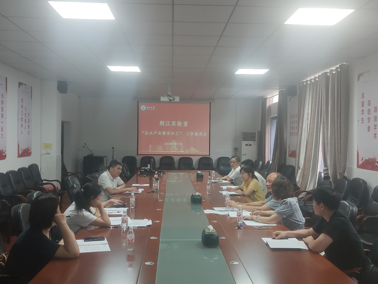 在一号楼217会议室召开湖北荆江实验室“淡水产品精深加工”工作推进会。院长杜何为教授主持会议,副院长李真顺教授、高梦祥教授、孙卫青教授及食品系部分教师参加会议。
