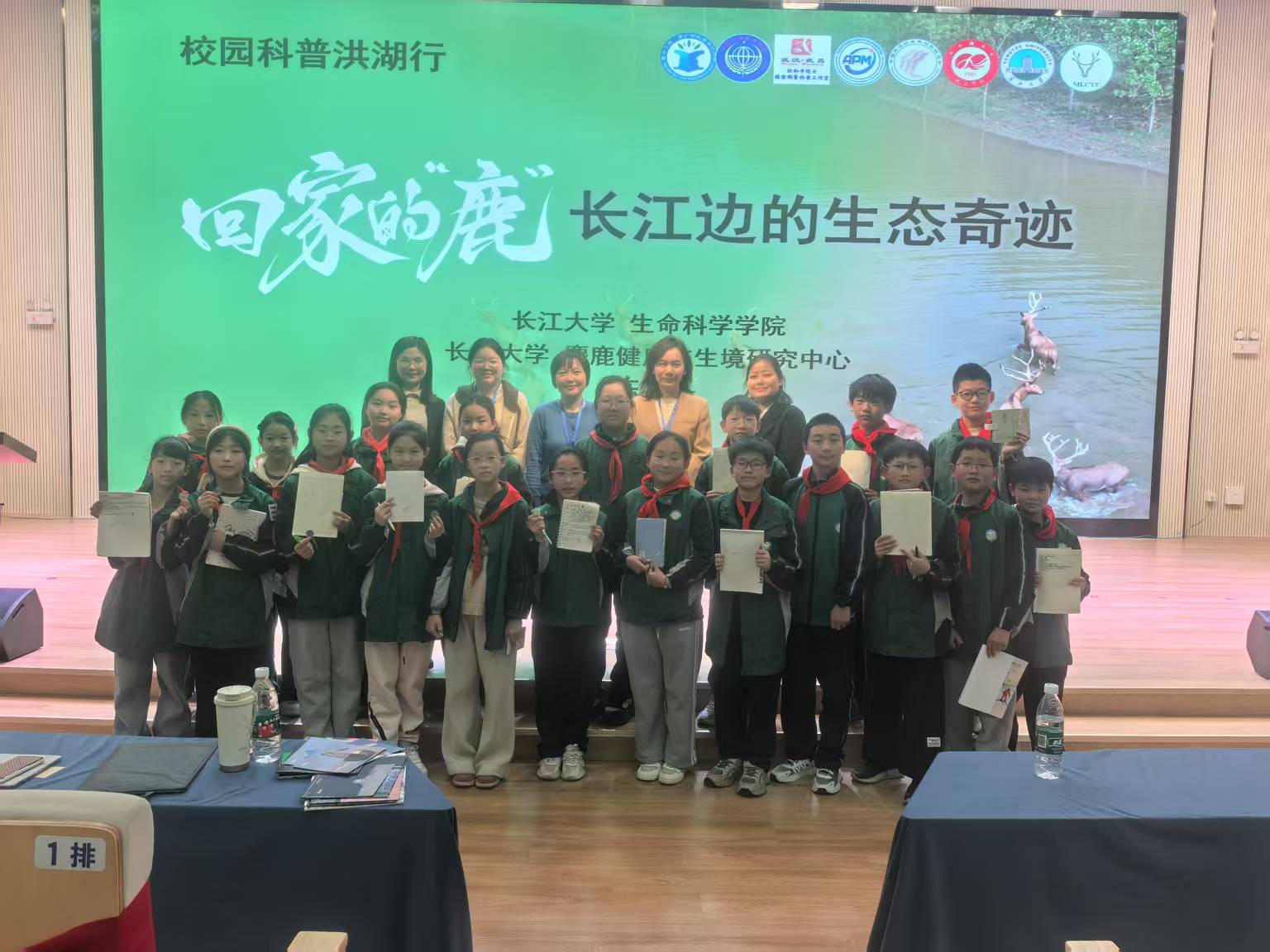 传科普之音,护万物共生。3月21日,回家的“鹿”项目团队参与“相约科学前沿,与一线青年科学家面对面”科普公益活动,走进洪湖实验小学,为300名余师生带来了一场别开生面的生态科普讲座。讲座中,团队指导老师陈卉教授以《回家的“鹿”——长江边的生态奇迹》为题,通过珍贵的历史影像、生动案例和详实数据,讲述了麋鹿这一珍稀动物的兴衰变迁,吸引孩子们兴趣的同时也对物种多样性的保护做出深刻阐释,在孩子们心中埋下了保护物种多样性的火种。