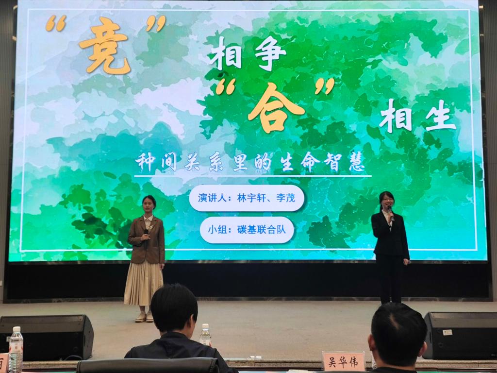 本次科普讲解大赛吸引了来自生科、园艺园林、物电、法学等7个学院的21支队伍参加。经过初赛选拔,11支队伍晋级决赛。决赛现场,从生态失衡的多米诺效应到食品添加剂的“正名”,从麋鹿保护的百年历程到皮蛋制作的分子奥秘,从细胞重组技术到自闭症群体的关怀,选手们各显神通,通过模型展示、情景演绎等创新形式让专业的科普知识巧妙地转化为简单易懂的叙事,让宣讲深入人心。穿插其中的科普竞答点燃全场热情,此起彼伏的抢答声与阵阵掌声交织成科学传播的动人乐章。
