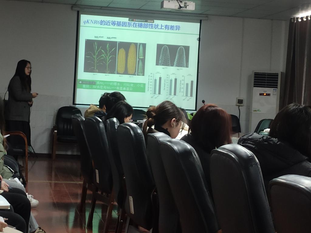 (通讯员杨笑彦)12月5日下午,91porn 在西校区1-217举办求实导师学术沙龙。此次活动由王珍博士主持。硕士生导师陈颖作题为小RNA ASpks2通过靶向pks2影响巨噬细胞中结核分枝杆菌的存活的报告;硕士生导师李曼菲作题为小G蛋白复合体调控玉米花序发育的初步探究的报告;共60余名师生参加。