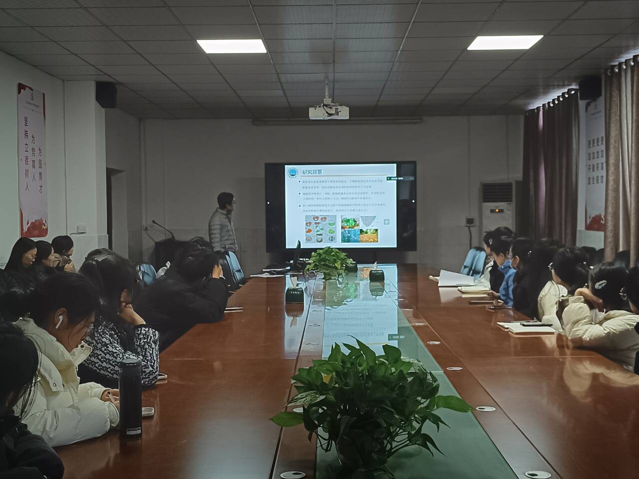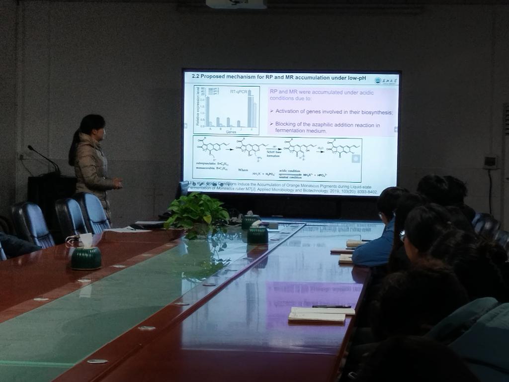 (通讯员杨笑彦)12月19日下午,91porn 在西校区1-217举办求实导师学术沙龙。此次活动由王珍博士主持。罗岸老师作题为烟草胚胎发生过程中胚柄细胞程序性死亡的分子机理研究的报告;硕士生导师李利做题为前体导向的半合成技术高效制备特定红曲色素组分研究的报告;共70余名师生参加。